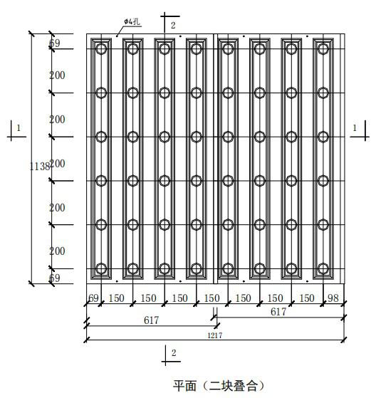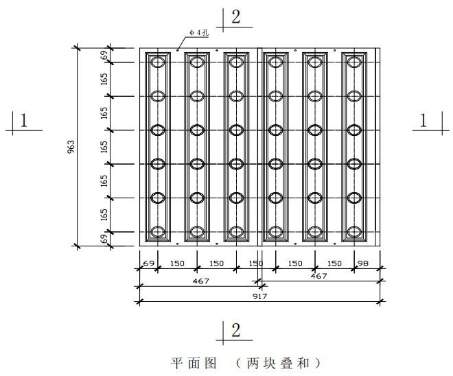 注:孔距尺寸為標(biāo)準(zhǔn)尺寸,必要時(shí)可根據(jù)濾池設(shè)計(jì)要求,采用特殊模板確定。